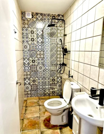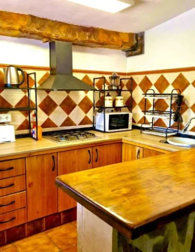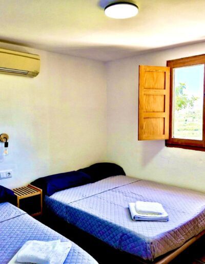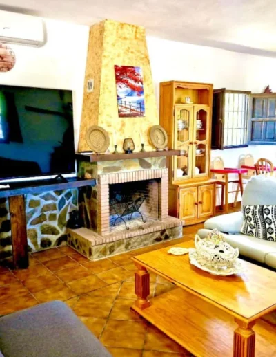 La casa cuenta con una sola planta, cuya habitación principal es el acogedor salón comedor con chimenea y cocina americana. Desde aquí, puedes acceder a los cuatro dormitorios y a los dos cuartos de baño con plato de ducha. Dos dormitorios disponen de dos camas individuales, mientras que los otros dos cuentan con una cama de matrimonio cada uno; en uno de estos también encontrarás un cuarto de baño integrado con bañera. Toda la casa dispone de aire acondicionado frío/calor para que disfrutes de una experiencia excelente independientemente de la estación que elijas para viajar a Andalucía.